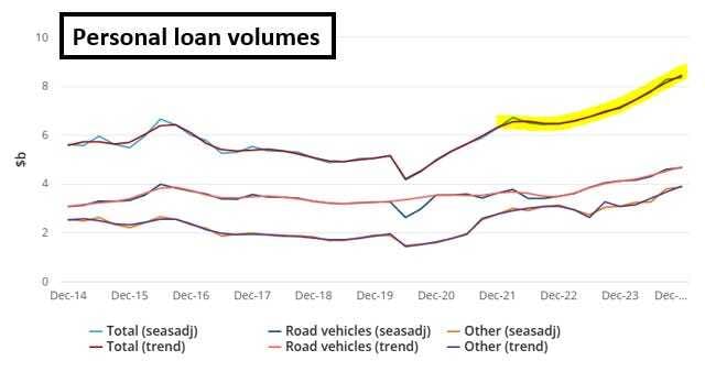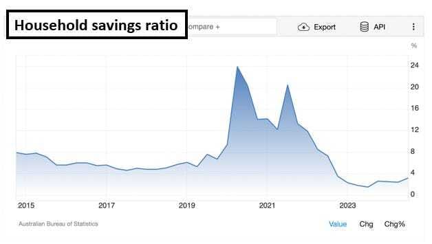 You can see this playing out in the collapse in household savings ratios across Australia over the last 12-24 months AND personal lending data: