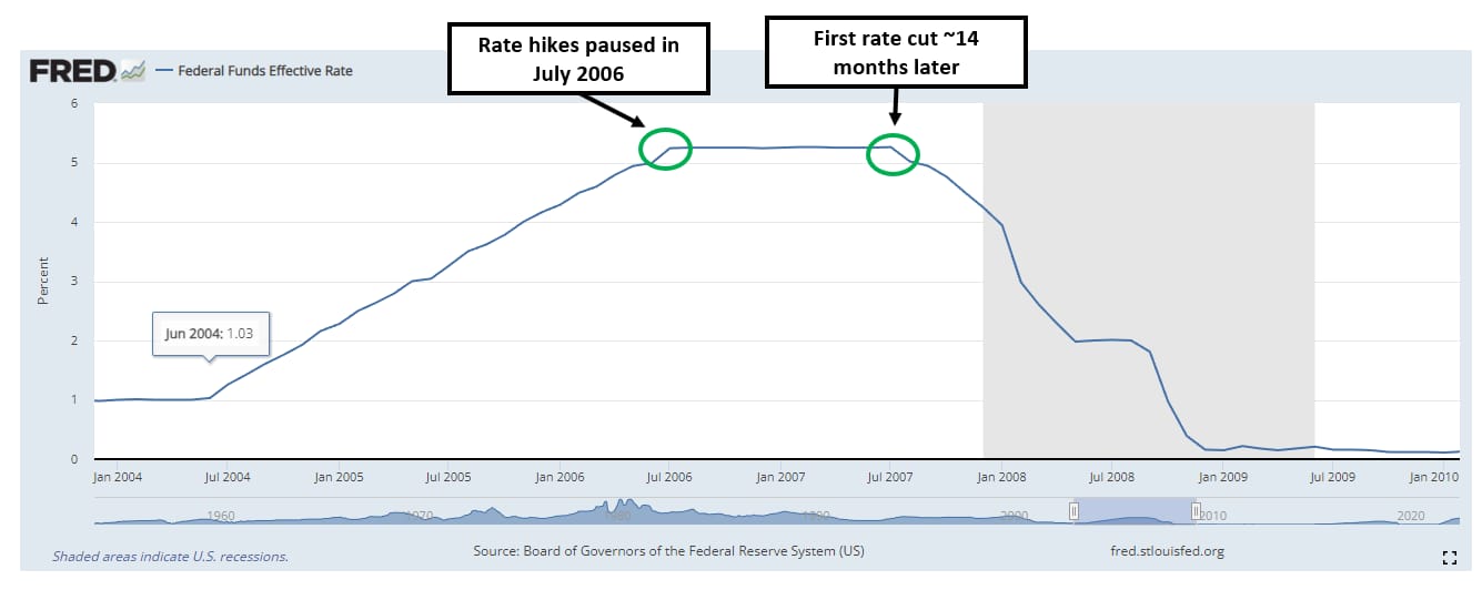 Rates eventually stopped rising in July 2006.