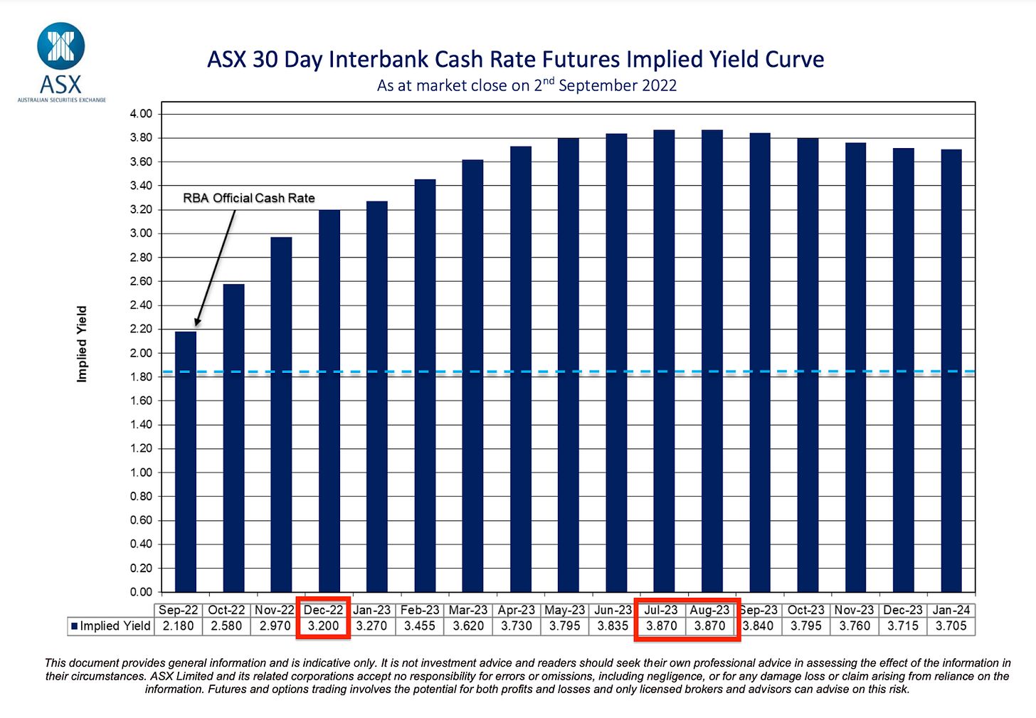 As mentioned earlier, the market thinks the cash rate will peak at around 3.87% in July 2023.