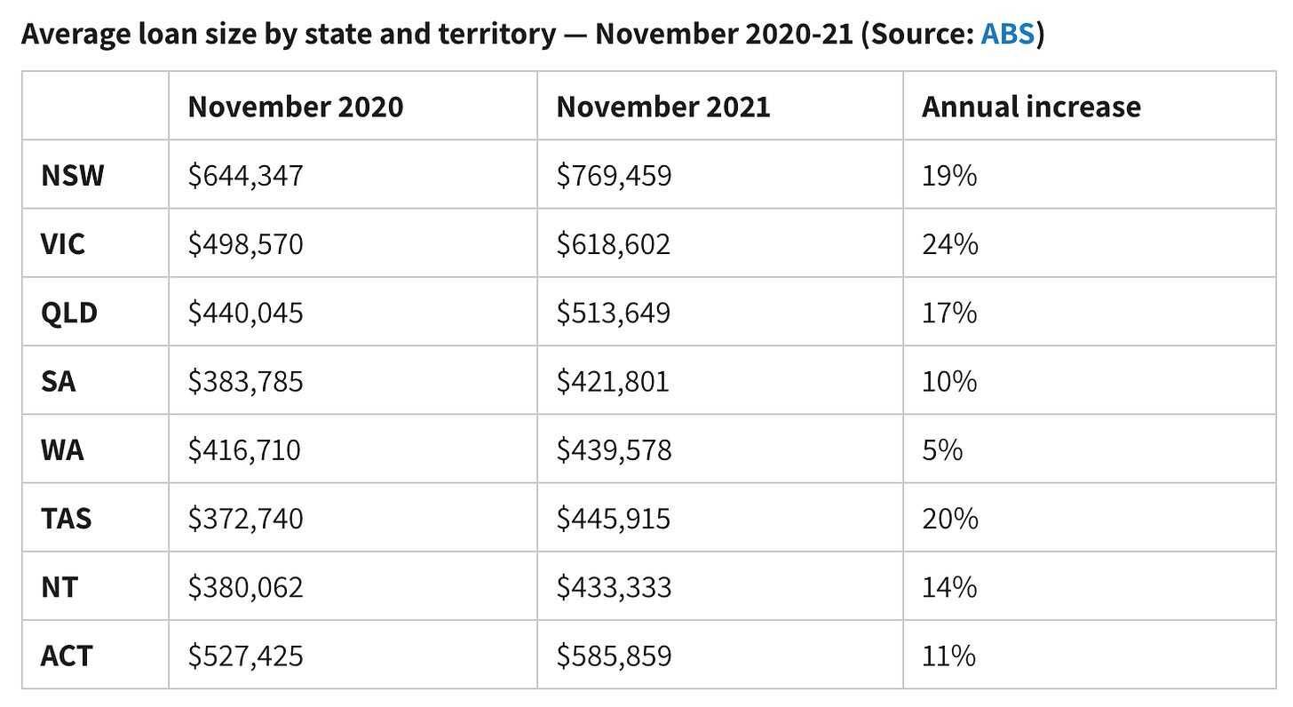 The average loan size in Victoria has increased from $498,570 in 2020 to $618,602 in 2021.