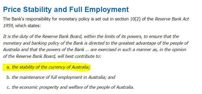 One of the RBA’s core duties is to ensure “the stability of the currency in Australia”: