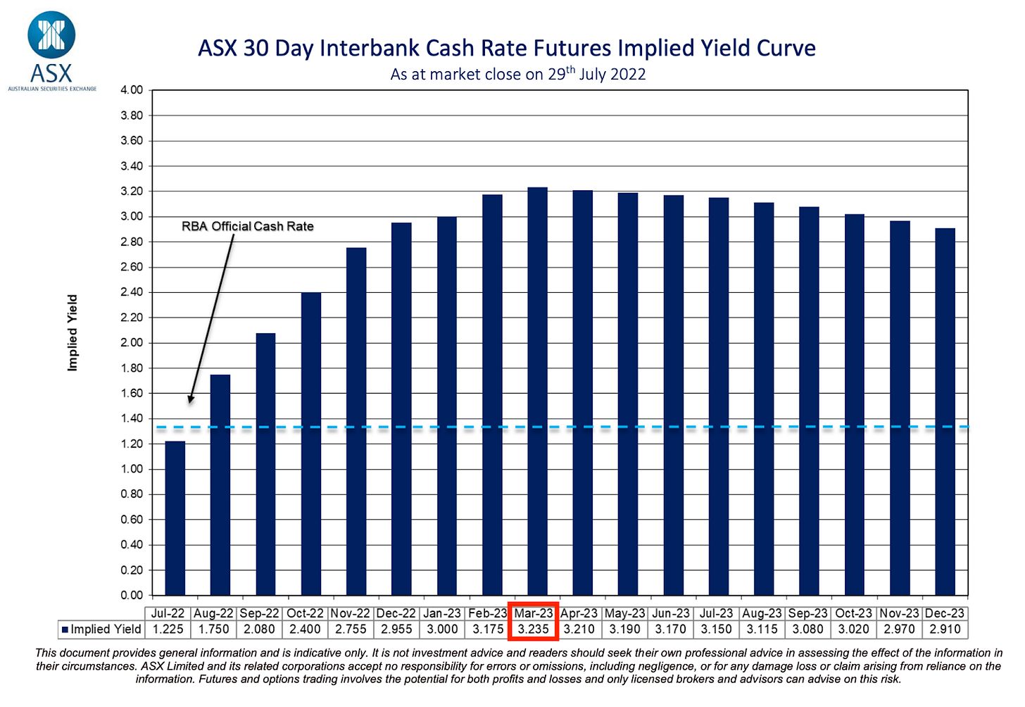 The market expects the cash rate to peak at 3.25% in March 2023.