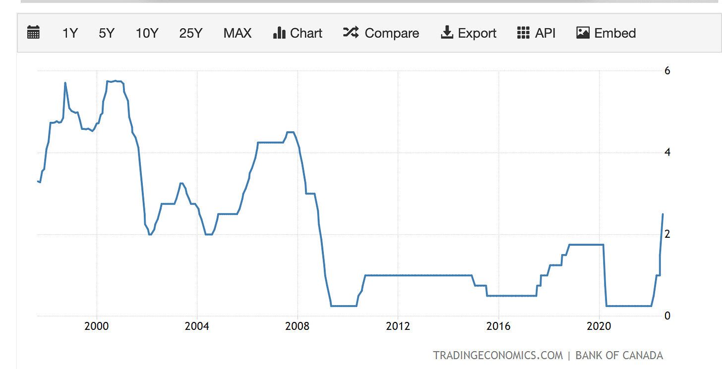 This took the official cash rate in Canada to 2.5% - a level not seen since before the Global Financial Crisis in 2008.