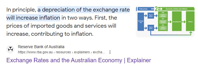 Inflation doesn't just magically happen… certain things in the economy need to change for it to come about… like the exchange rate going lower.