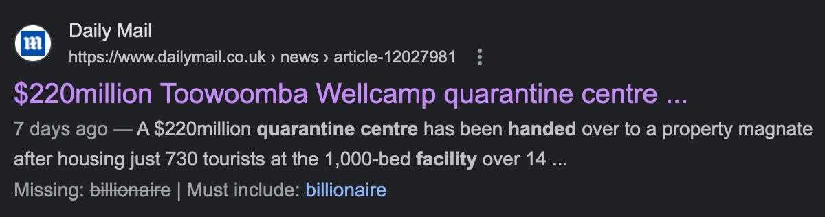 Last but not least, the hundreds of millions of $ spent on quarantine facilities that now sit idle (and worse) have been handed over to the billionaires who own the land the facilities sit on.