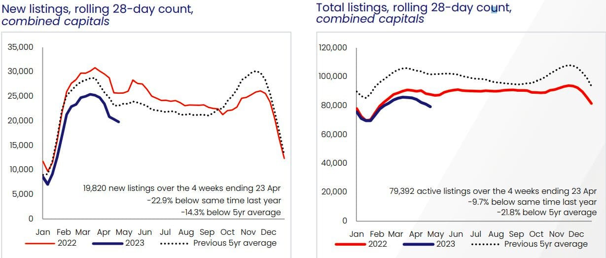 Total listings across the capital cities are at ~80,000 compared to ~90-100k in previous down cycles.