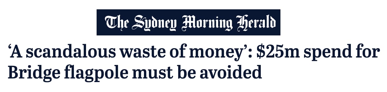 Last year the NSW government was under fire for a budgeted $25M to install flags on the Sydney Harbour Bridge.
