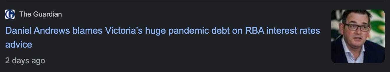 Ironically, Dan Andrews came out on Wednesday blaming everyone except himself and his government for the country's inflation problem and the state's debt issues.
