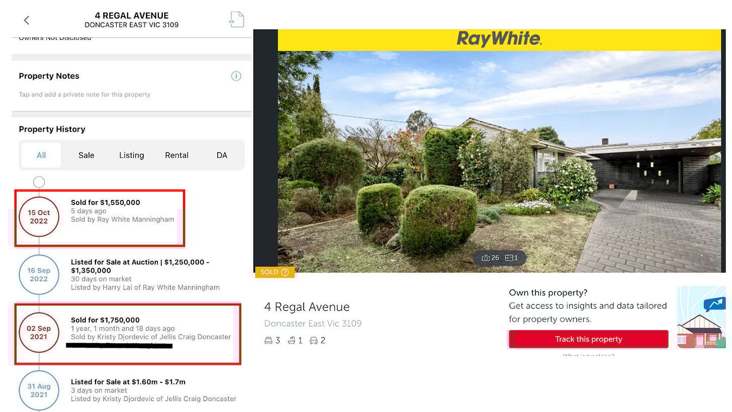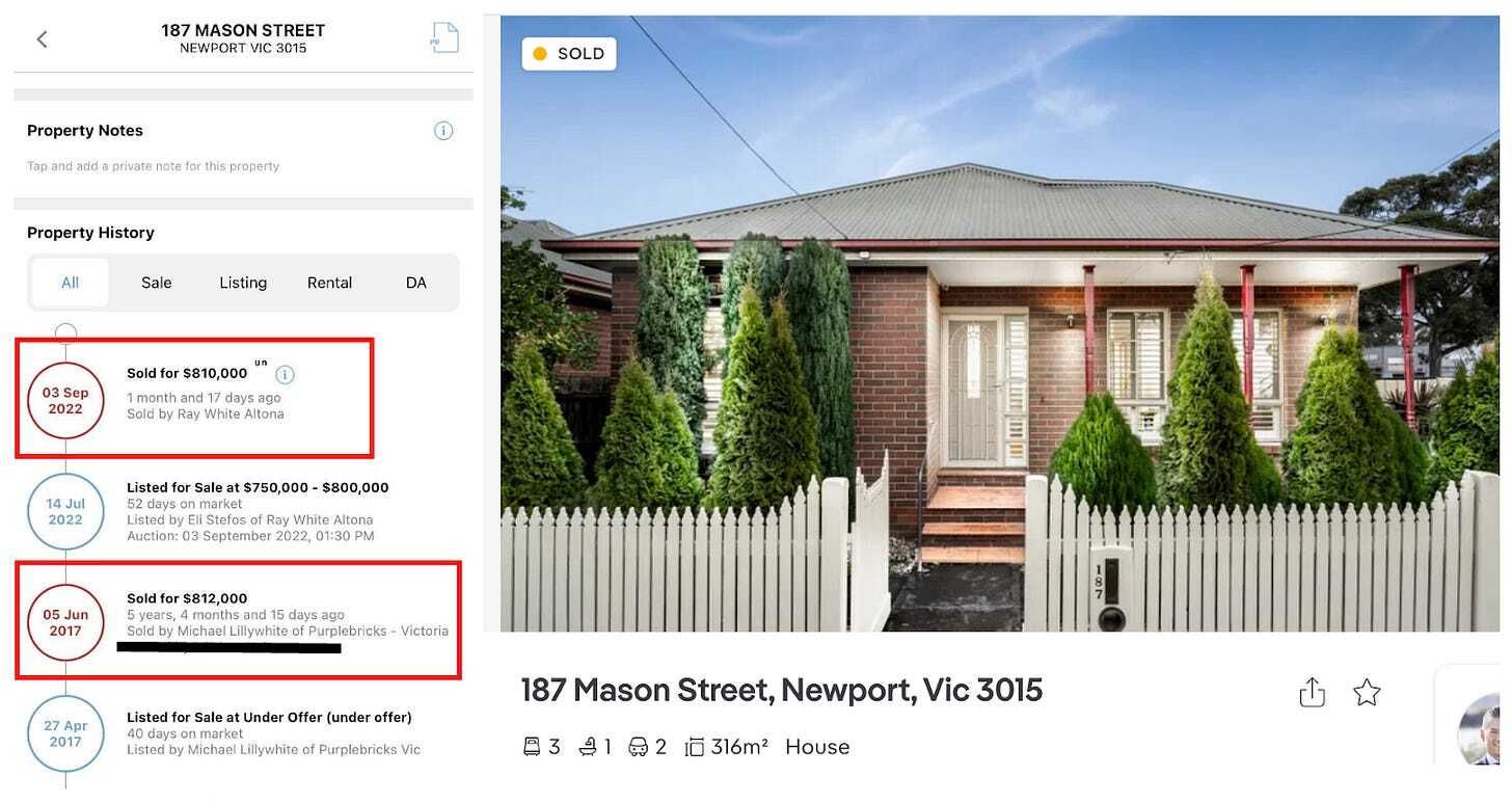 Another modest loss nominally, but this property also sits in what is deemed a “blue chip” suburb.