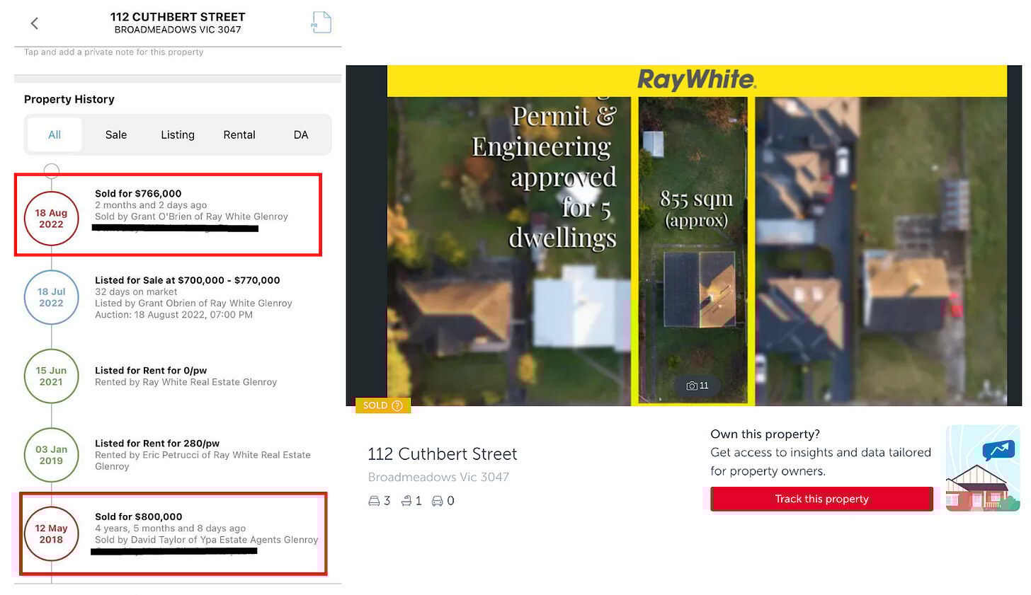 Previous sale price: $800,000 - May 2018