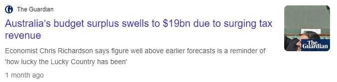 The Australian Federal Budget recently recorded an unexpected surplus of $19BN.