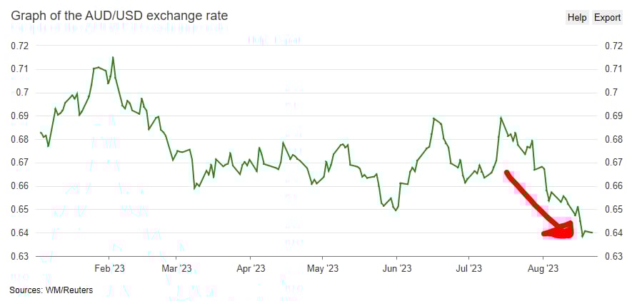 Decreasing international demand for Australian goods puts pressure on the AUD exchange rate - we have already started seeing this in the last few weeks: