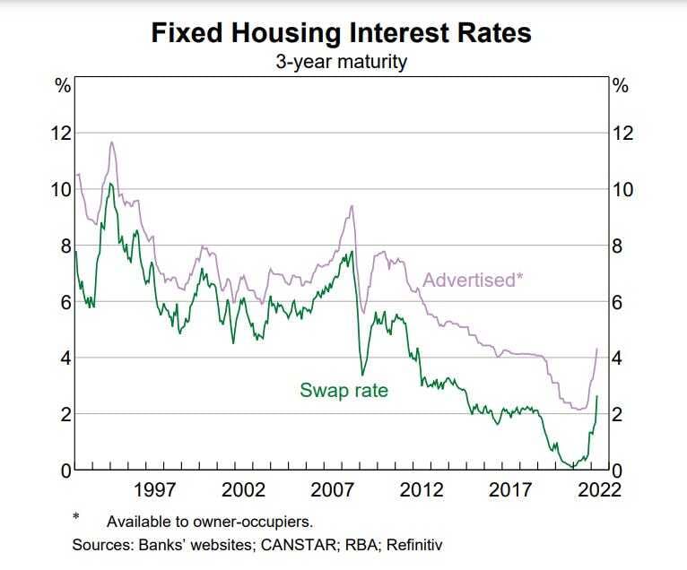 The shorter-term fixed rates were even lower, some Australians would have managed to fix their loans for 1-2 years at rates as low as ~1.8%.