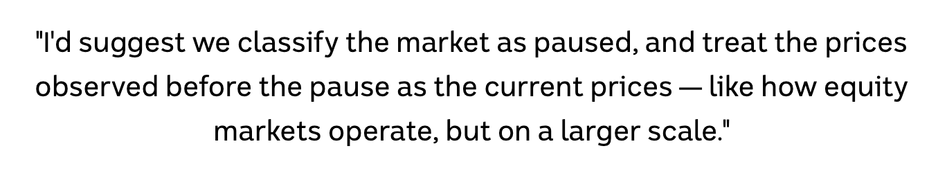 In other words, if they could stop transactions then no one would see the impact frozen lending markets would have on property prices.